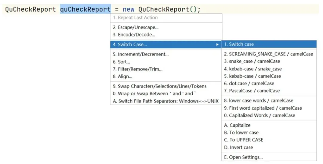 使用:按住Shift + Alt再不停的按U,会把选中内容的单词的下划线转驼峰转大写等,不停的转换,直到你想要的。