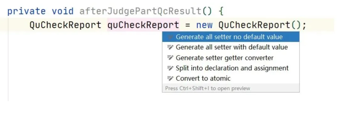 简介:可以直接生成这个对象的所有set方法,非常方便。