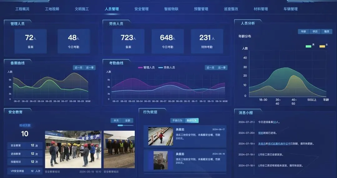 痛点:代打卡泛滥增加用工纠纷,薪资核算耗时费力;现场违规操作难监管,特种人员资质过期暗藏重大安全隐患。