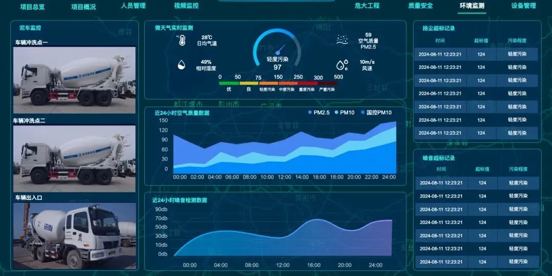 实时监测工地扬尘、噪音各项指标,数据超标自动启动喷淋降尘设备,全程无需人工值守干预;所有环保监测数据自动留存归档,一键生成合规台账报表,无缝对接监管平台,彻底规避投诉与罚款风险。