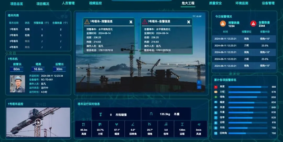 痛点:塔吊、升降机突发故障导致工期延误,塔机碰撞风险居高不下,大型设备闲置浪费、调度混乱。