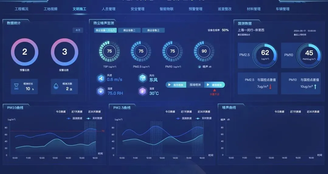 痛点:扬尘、噪音超标频繁被投诉处罚,环保台账整理繁琐,迎检准备耗费大量人力精力。