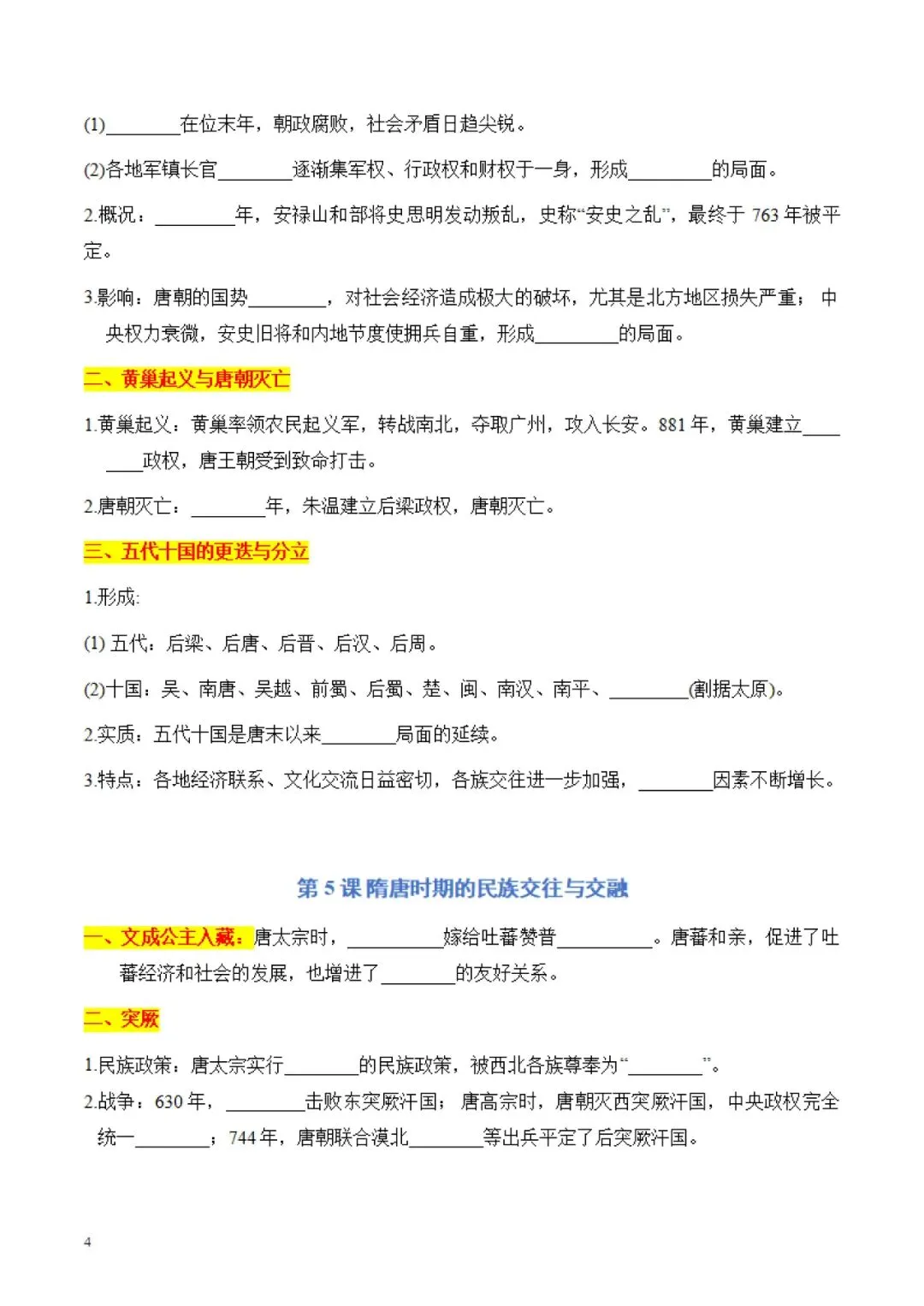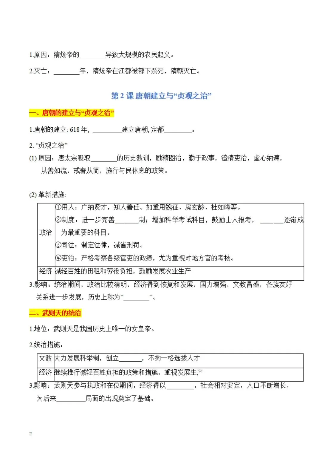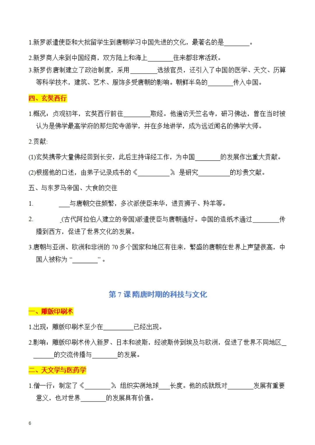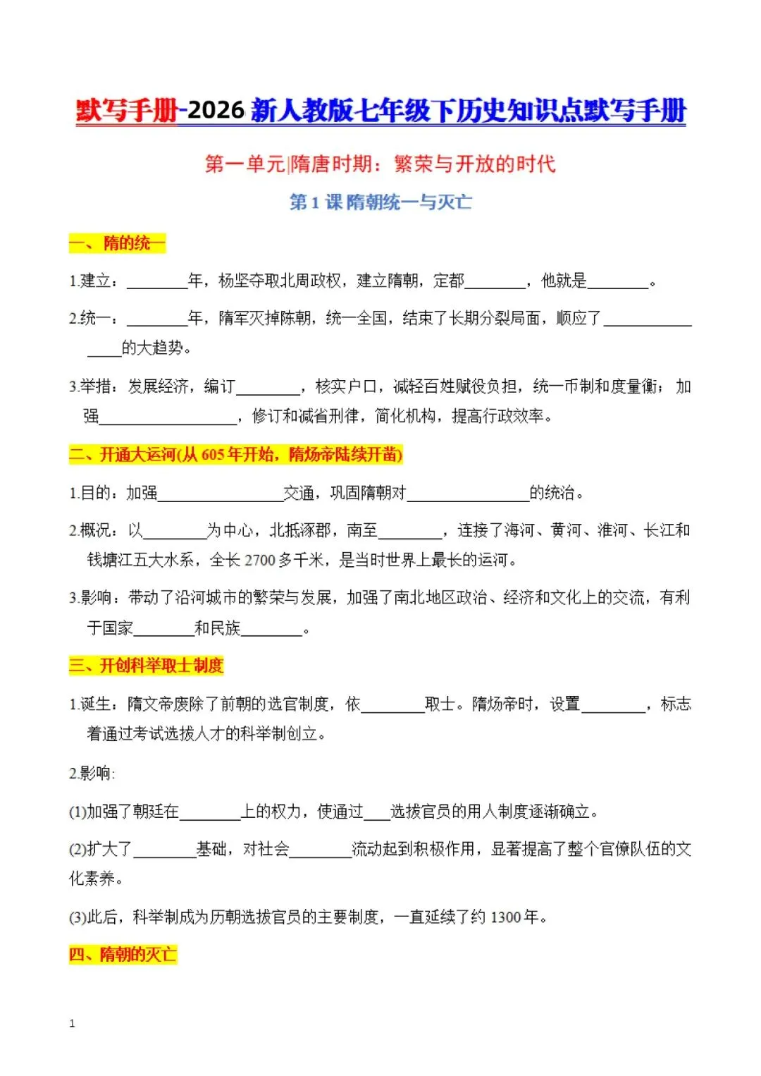 七年级下册 历史 知识点默写手册 电子版可打印
