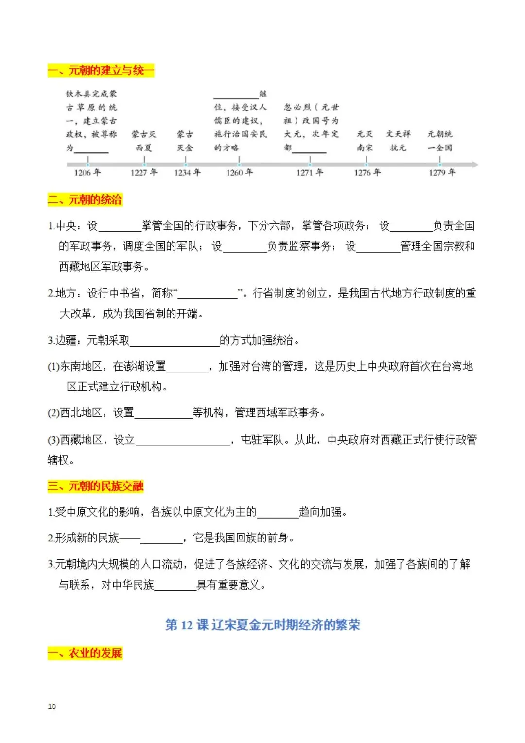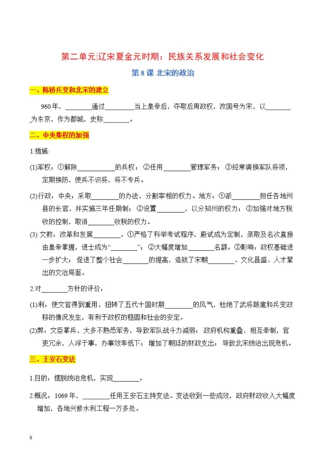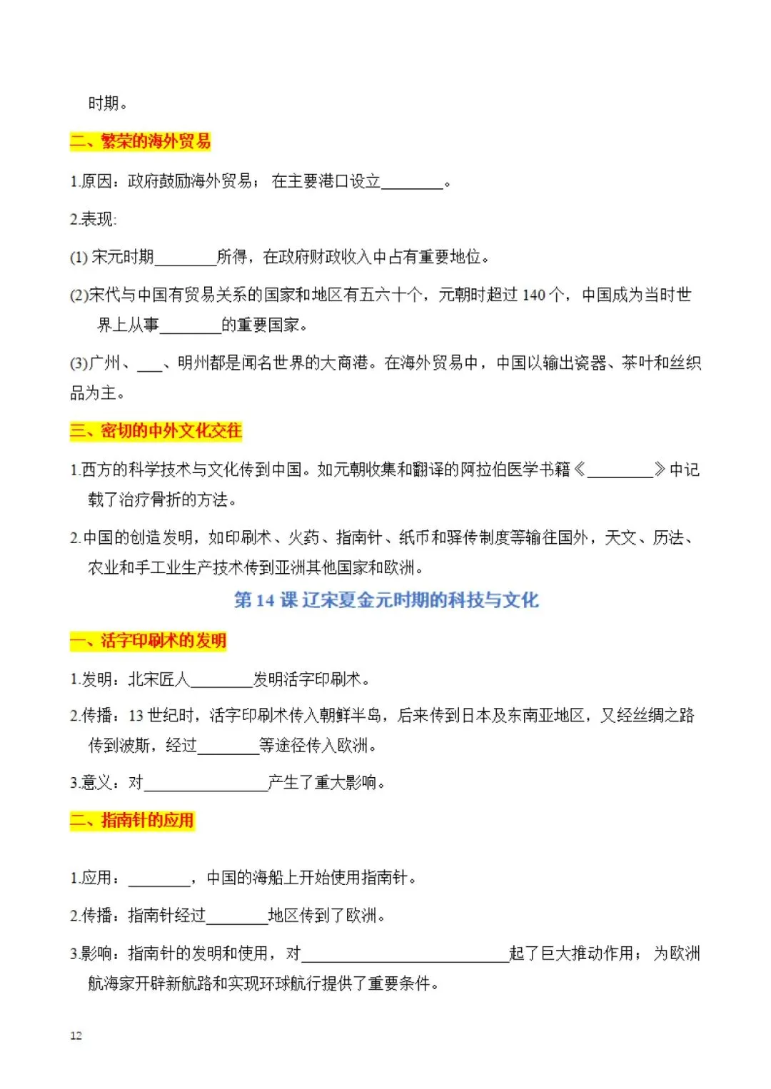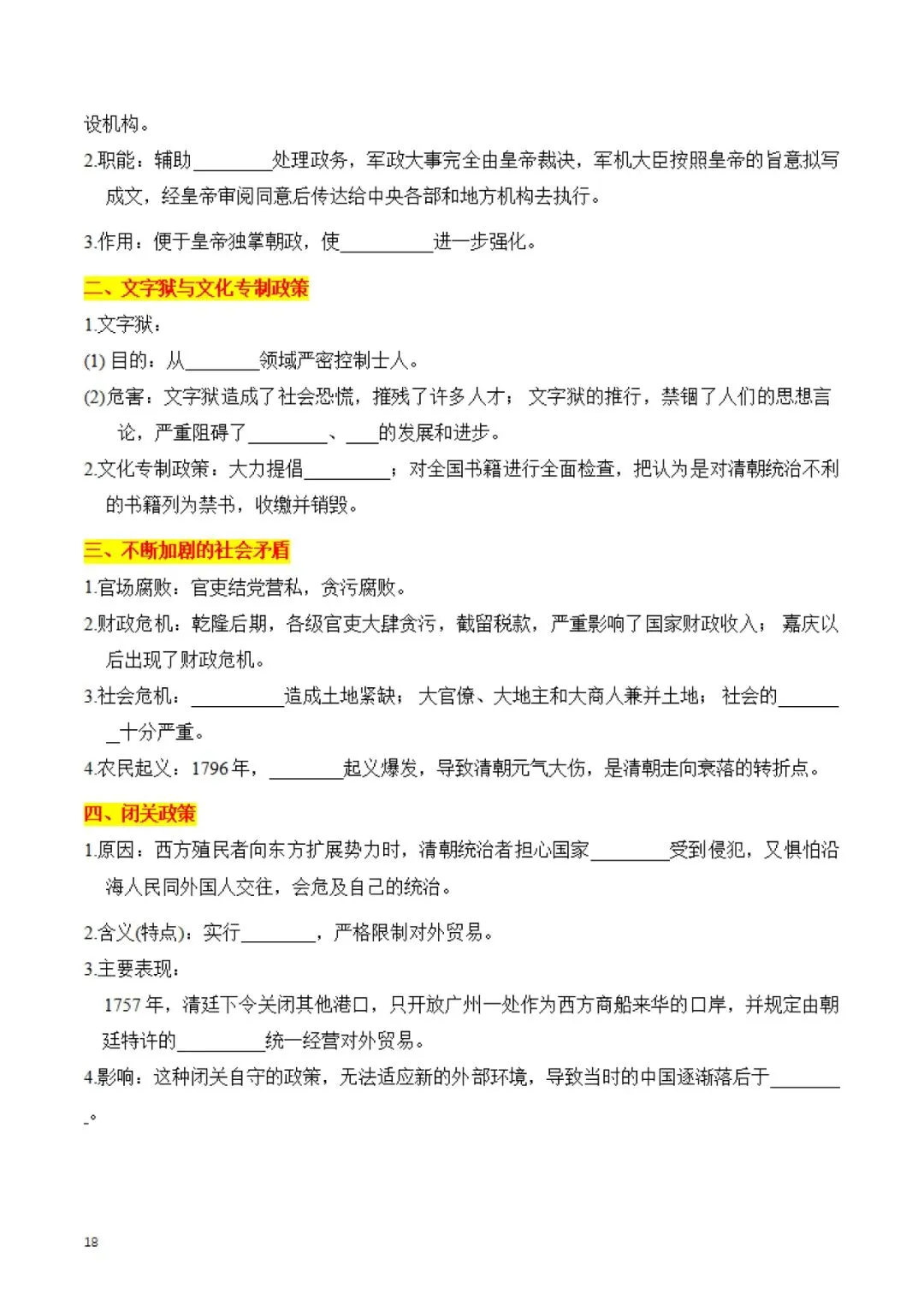七年级下册 历史 知识点默写手册 电子版可打印