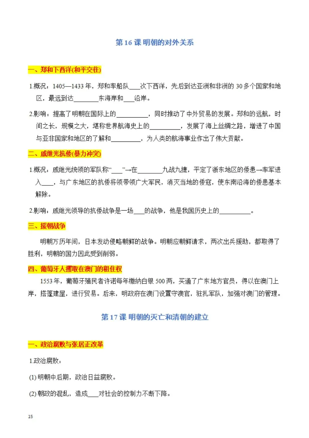 今天老师为大家整理好了相关资料:七年级下册 历史 知识点默写手册 电子版可打印