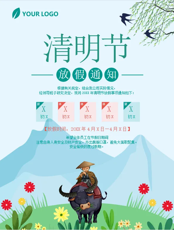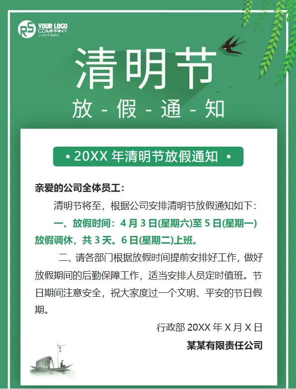 《2026清明节放假通知模板》电子版,可免费下载编辑公司|中小学|大学通用