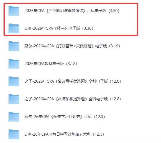 2026年CPA电子版资料更新(3.30) 微信推送改版啦,为了不错过最新的考试资讯和资料分享,记得把学姐设为【星标】呀~ 星标方法很简单:点击上方蓝字【财会学姐】→点击右上角【…】→设为星标 关注下方两个公众号,防止失联。 2026年东奥会计类网课+题库免费使用啦! 点击下方↓“阅读原文”↓免费自取!