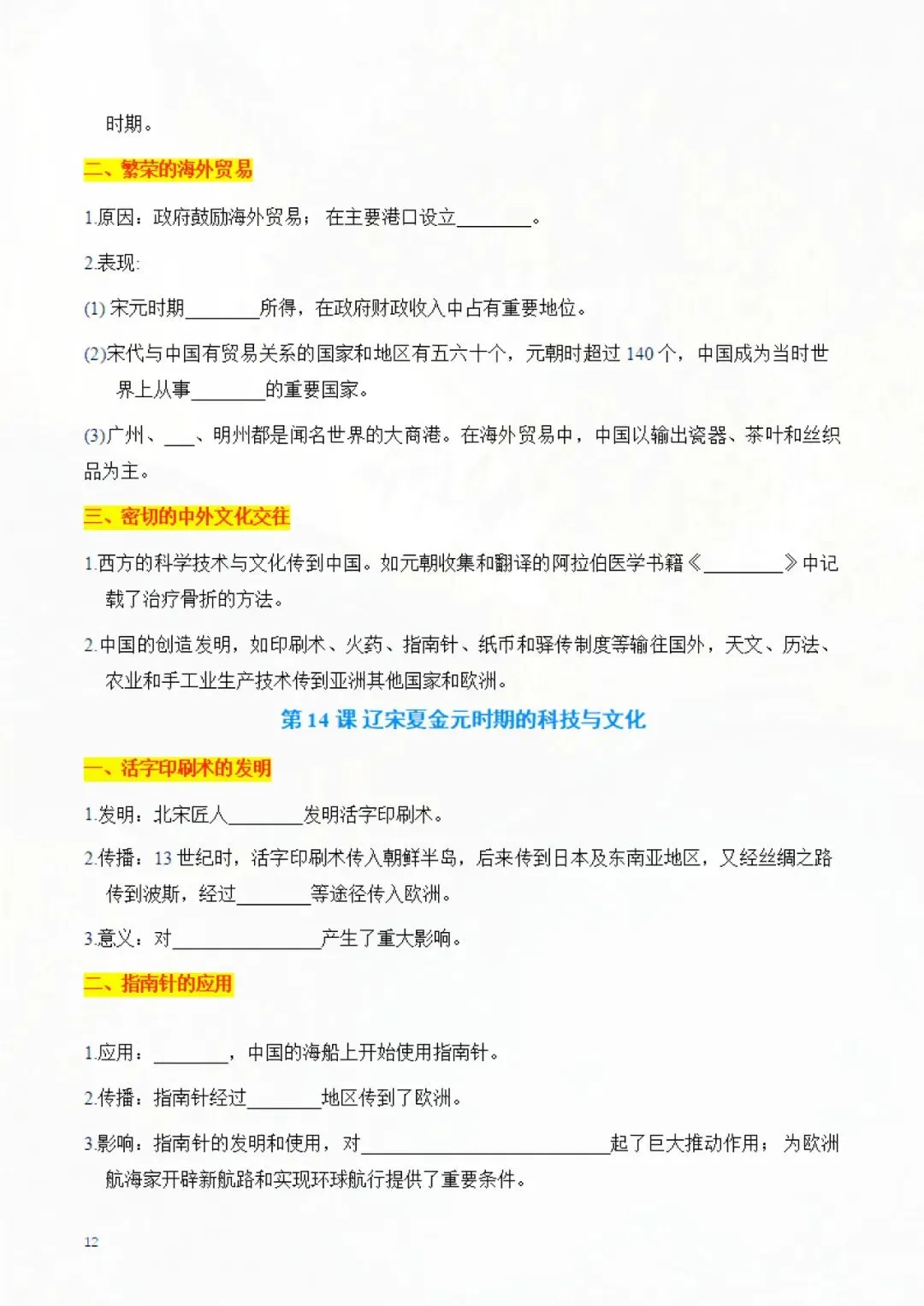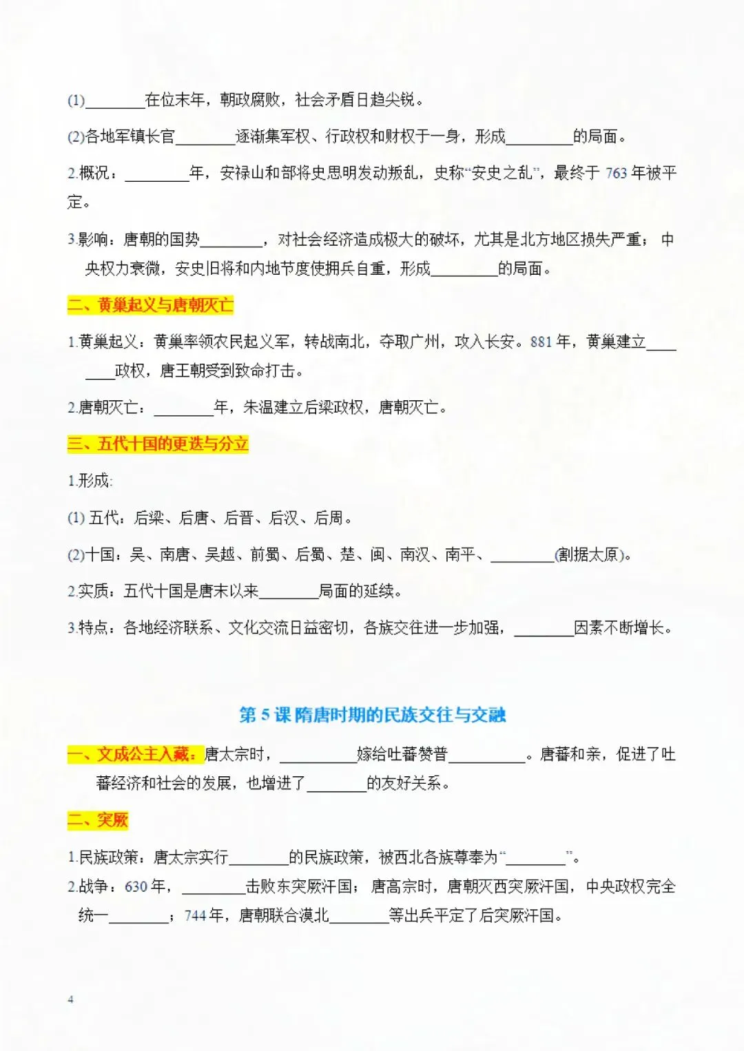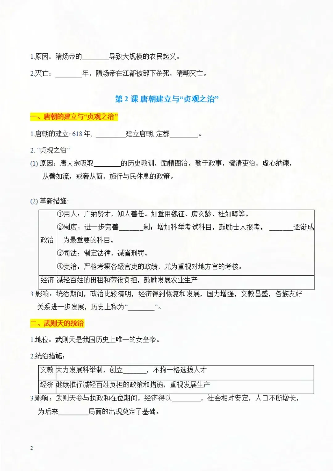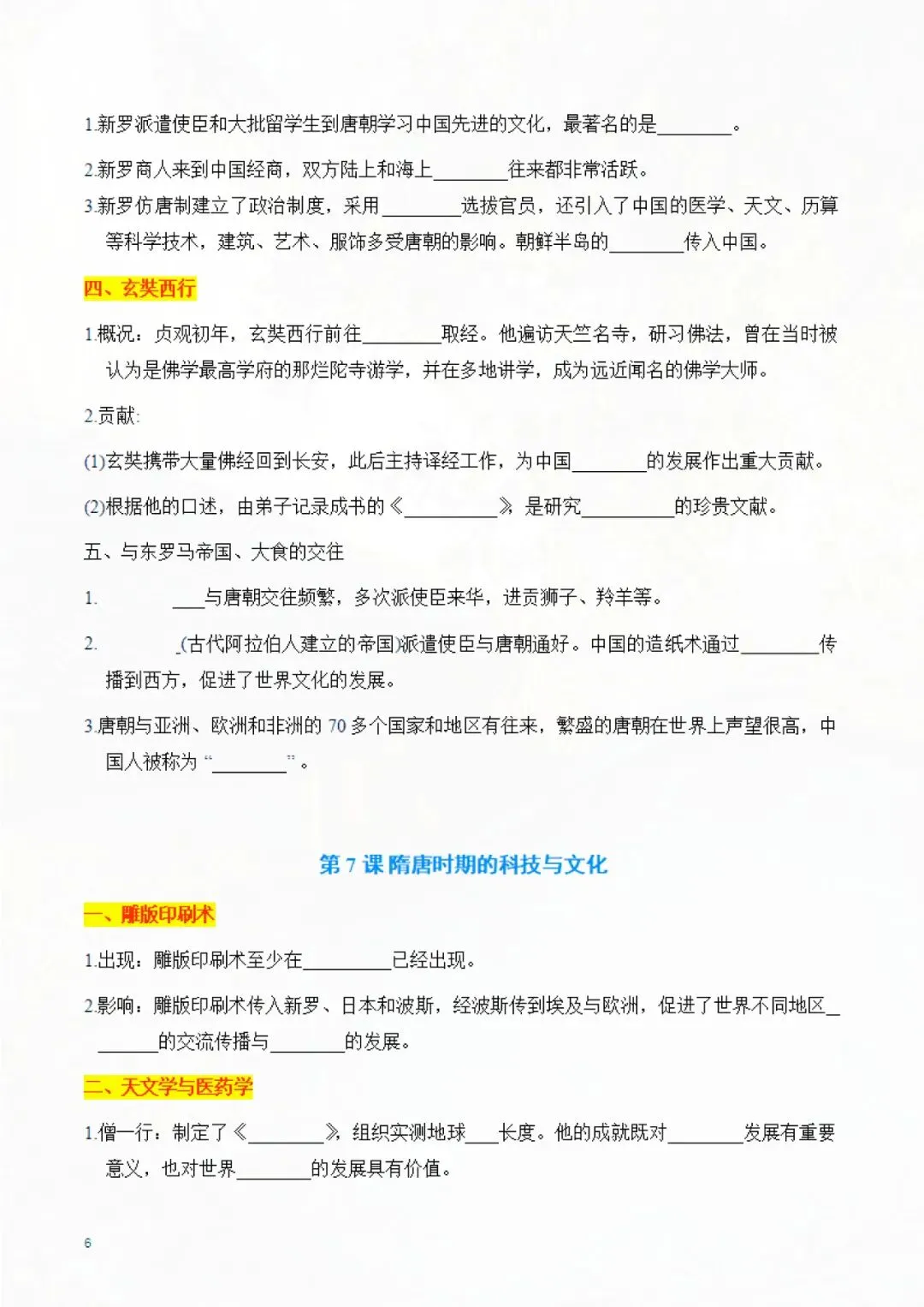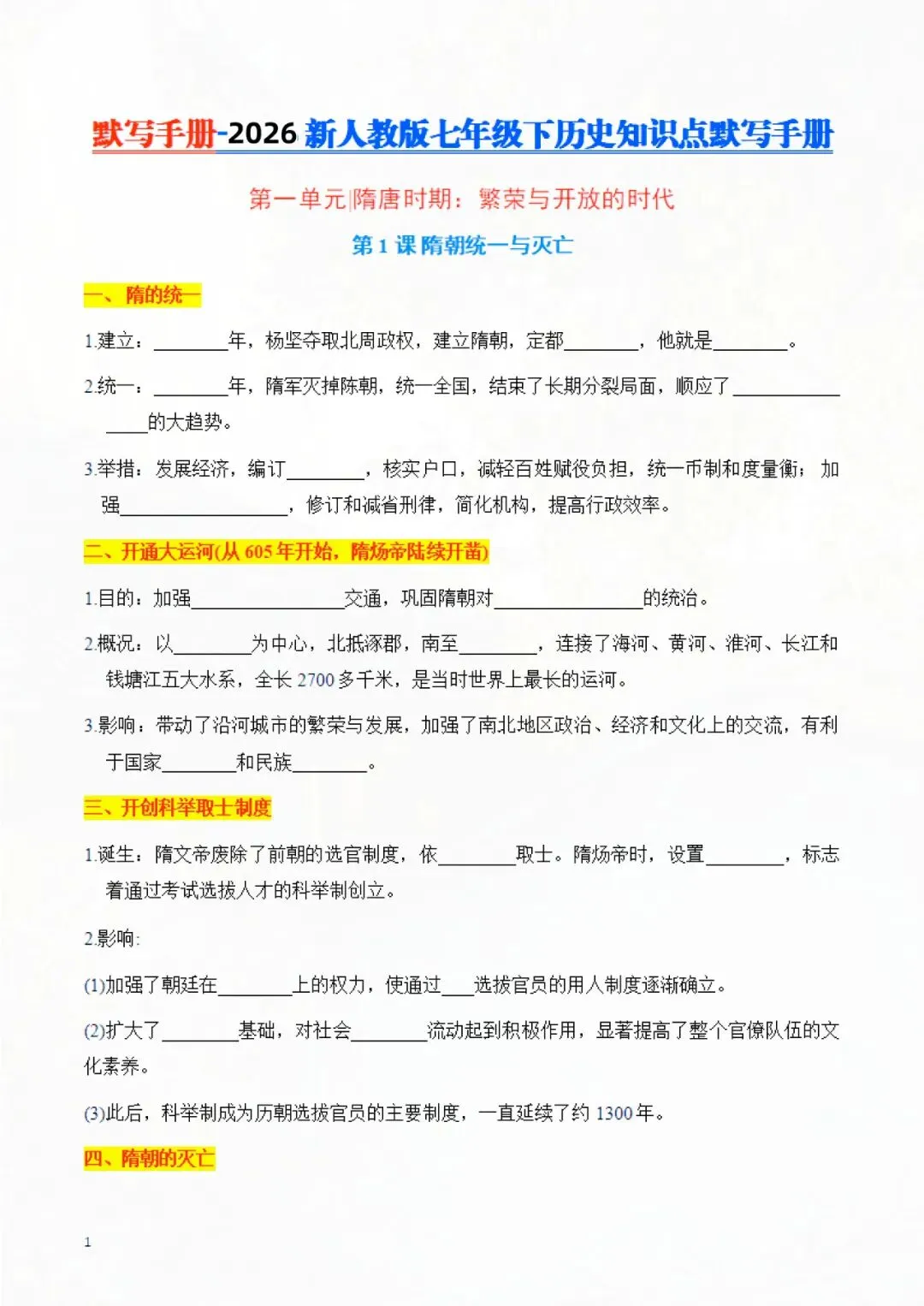 七年级下册历史 知识点默写手册 电子版可打印