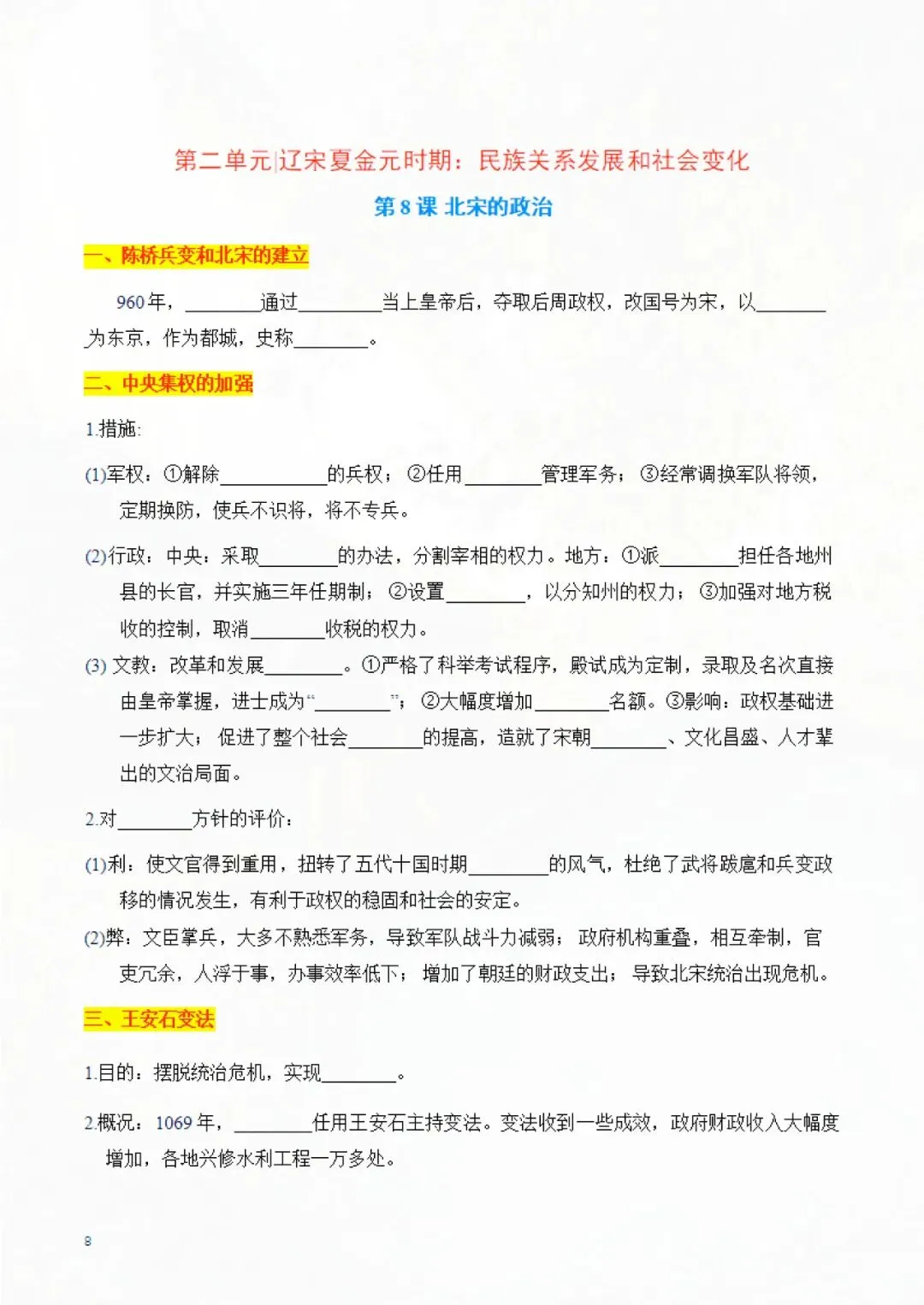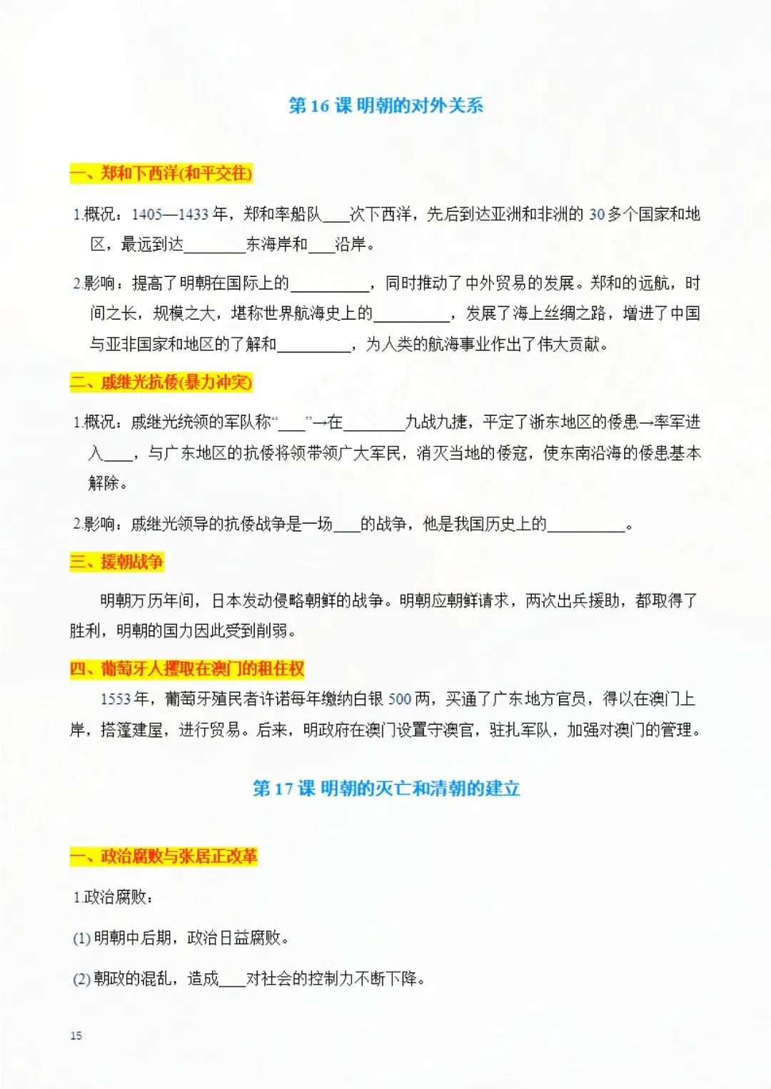 今天老师为大家整理完了:七年级下册历史 知识点默写手册 电子版可打印!