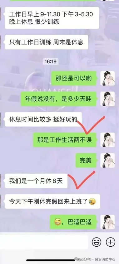 ▲公司分配到重庆某消防队学员与重庆综合训练基地办公室杨主任聊天记录