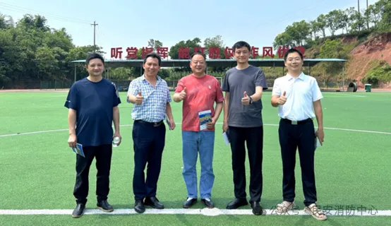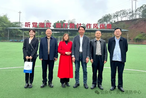 ▲成都理工大学党委常委、组织部长陈科先(右二)一行参访民安消防综合训练基地(2024年6月)