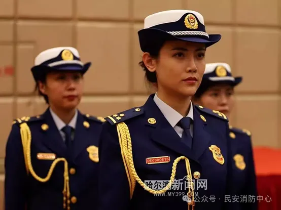 ▲英姿飒爽的消防队女干部