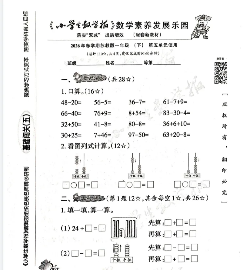小学1-6年级海量小学试题包括单元测试,课时练习,期中测试卷,期末练习,历年真题集,应用题专项,计算专项,思维训练,数学报,课内阅读,课外阅读,作文范文,按课文内容填空,组词,看拼音写词语,修改病句,等等应有尽有,需要了解更多拉至文末