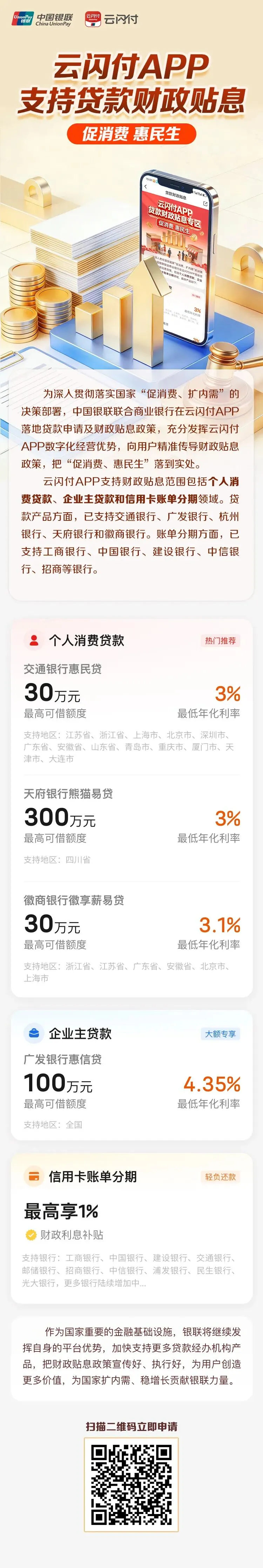 促消费 惠民生丨云闪付APP支持贷款财政贴息了,快来申领吧!