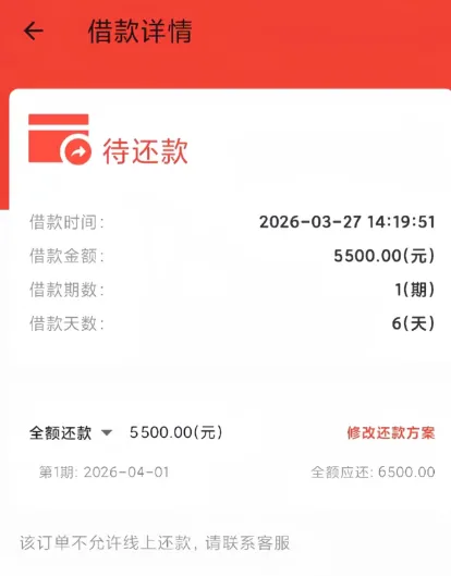 例:平台给强制下款5500元,6天后需要还款6500元,这1000元的则被当成“手续费”“服务费”给扣除,按照全额进行还款,典型的高炮手段。