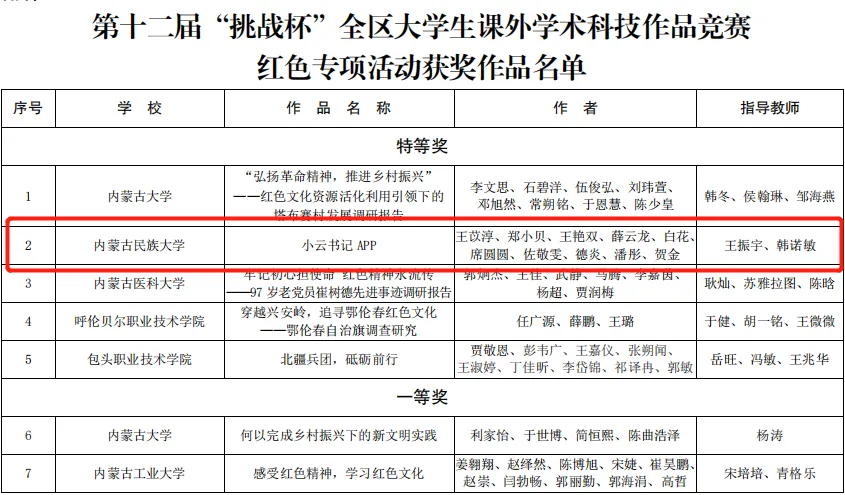 喜讯 | 我院“小云书记APP”获第十二届“挑战杯”全区大学生课外学术科技作品竞赛红色专项活动特等奖