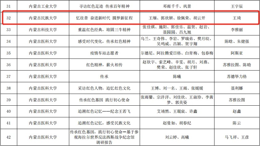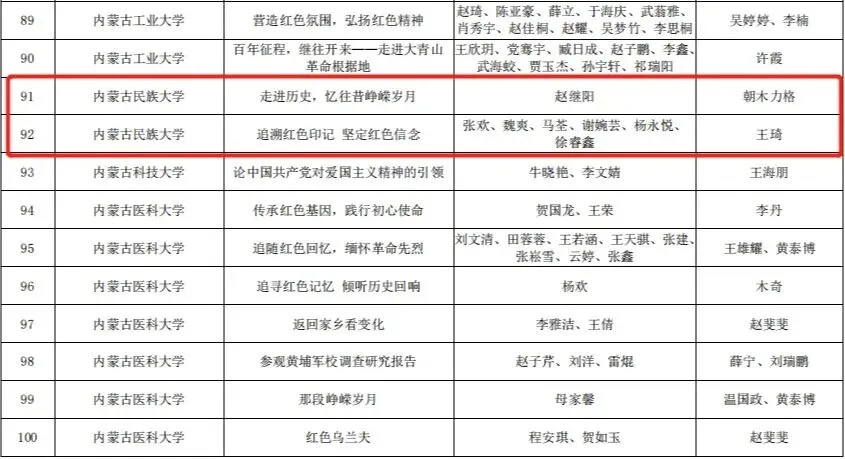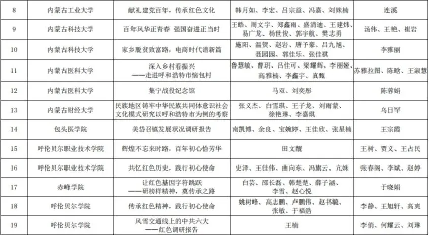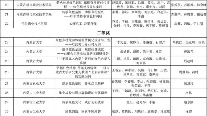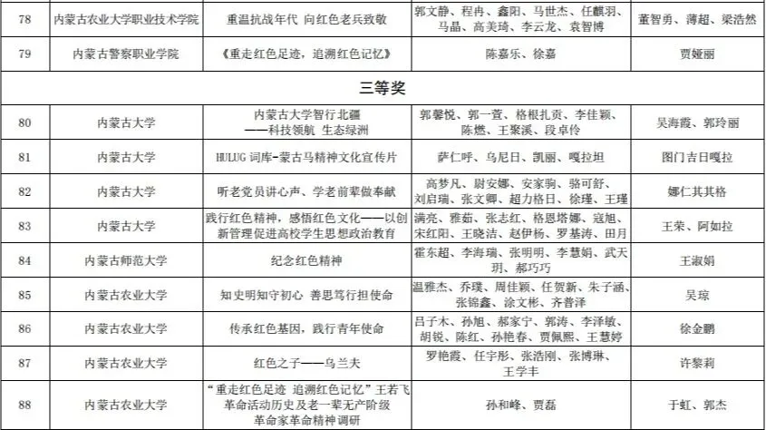 按照《关于组织开展第十二届“挑战杯”全区大学生课外学术科技作品竞赛的通知》(内团联发〔2021〕4 号)精神, 2021年 3 月,在全区各高校的大力支持和积极参与下,第十二届“挑战杯”全区大学生课外学术科技作品竞赛红色专项活动顺利举办。本次活动共有全区 33 所高校 268 件作品参赛,其中,我校取得特等奖1个,二等奖1个,三等奖2个的好成绩。