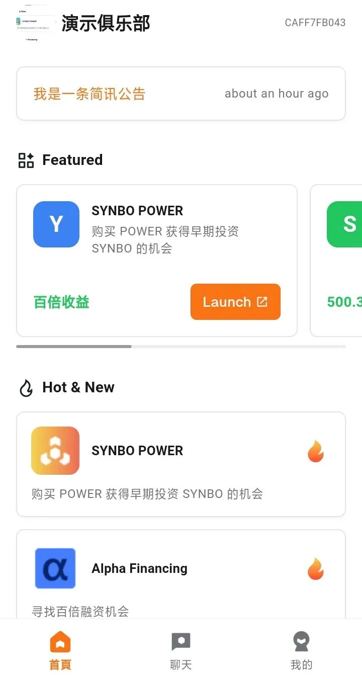 由 Club 创建者创建的公开群,所有CLUB成员自动加入并可自由讨论 |
