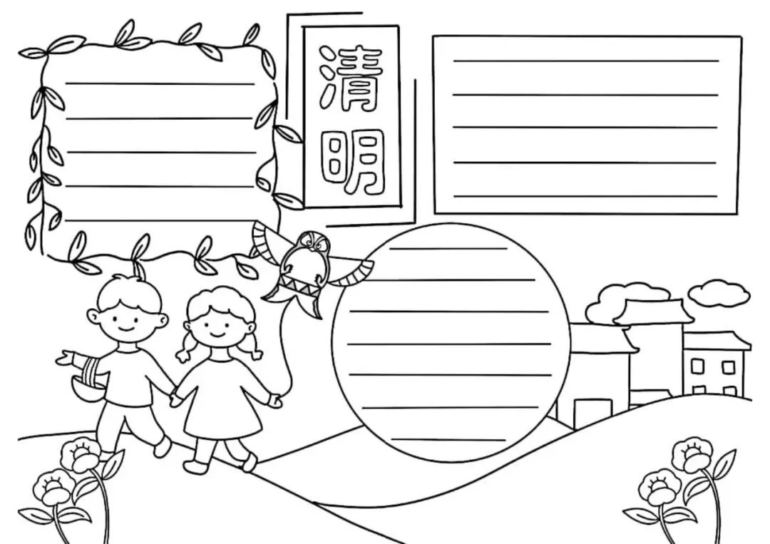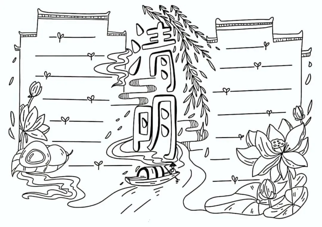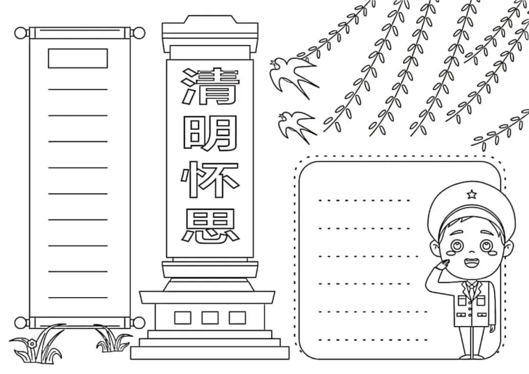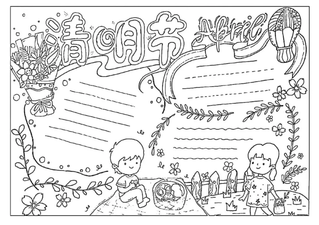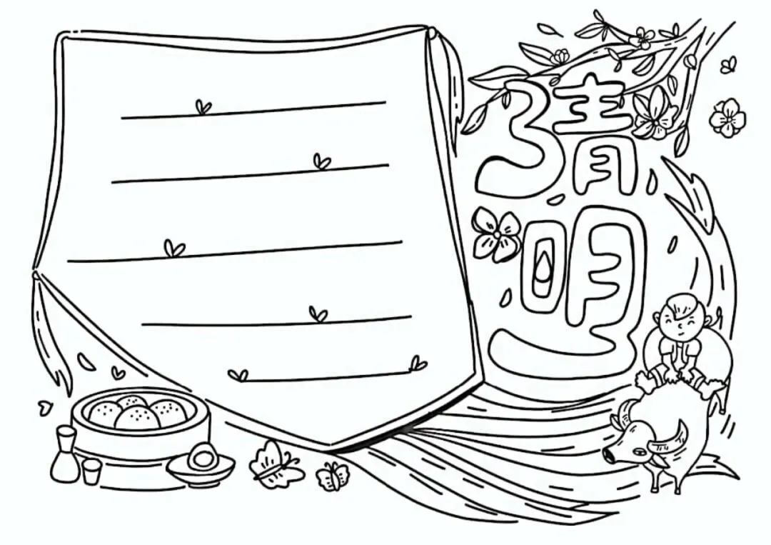 清明节手抄报,主题班会,黑板报,有线稿,可打印