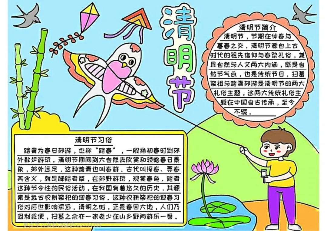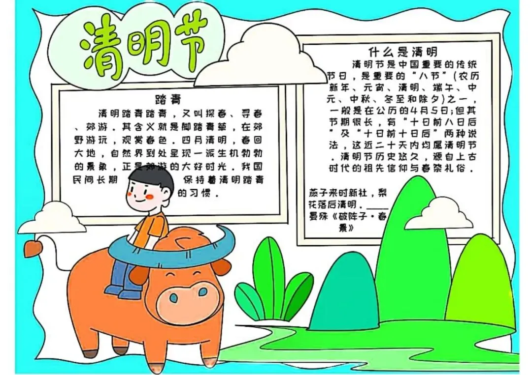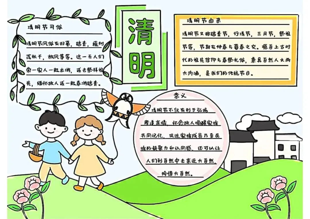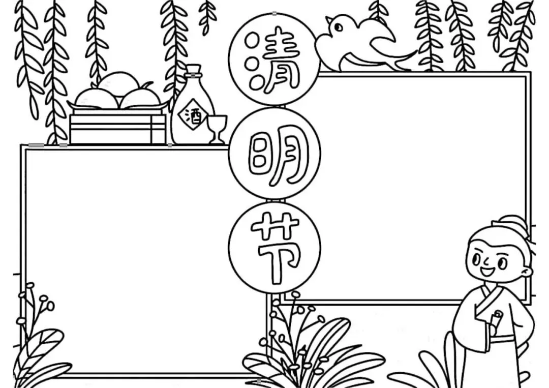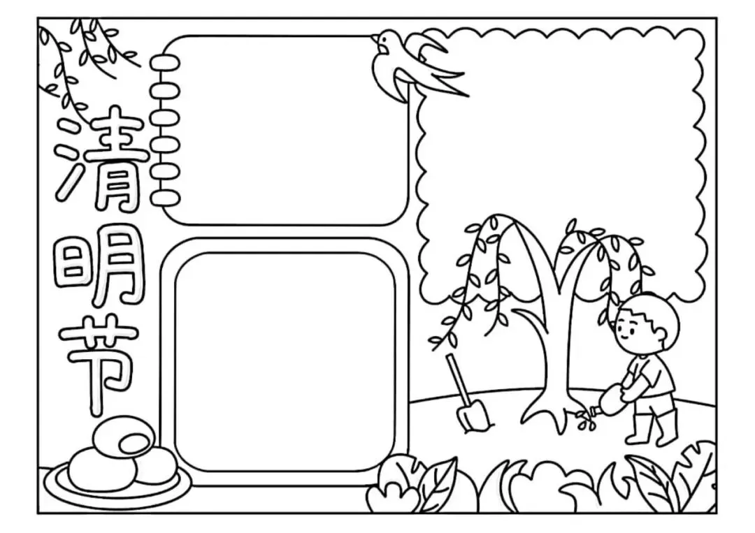 清明节手抄报,主题班会,黑板报,有线稿,可打印
