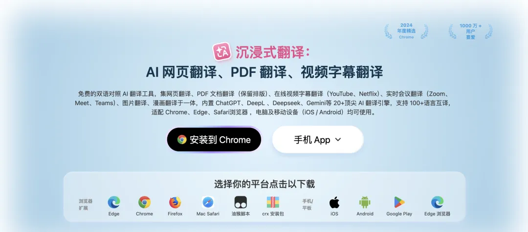 真正好用的工具,不是让你忘记语言的存在,而是让你在两种语言之间自由穿行。 https://immersivetranslate.com/zh-Hans/
