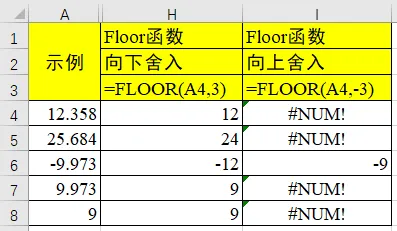 首先,我们来看 FLOOR 函数,这个函数对数值的符号比较敏感,不同的数值符号对 FLOOR 函数而言,会存在不同的进位方向~