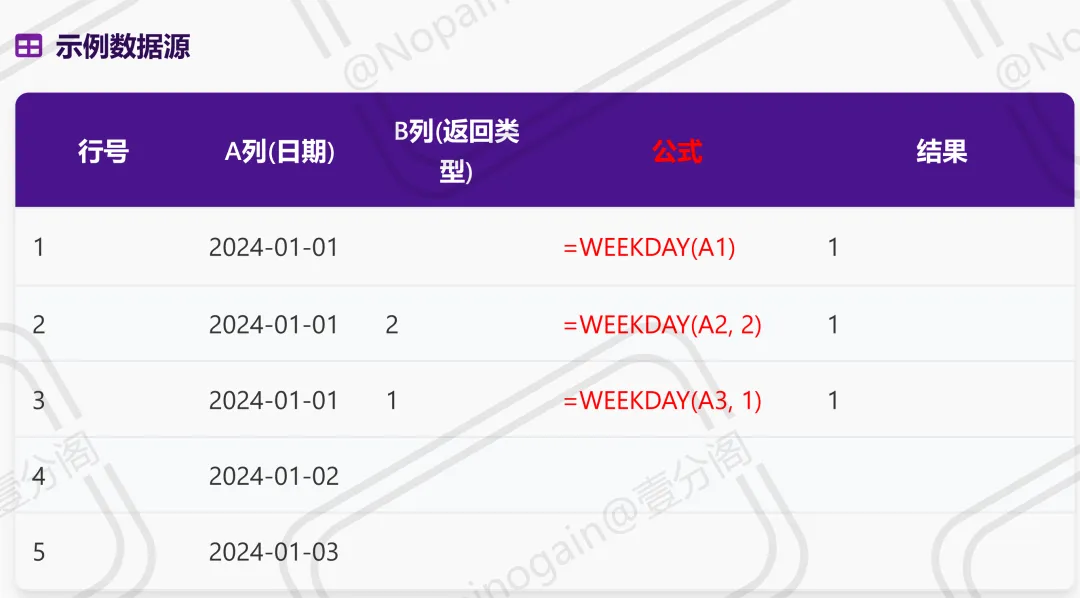 基本语法:=WEEKDAY(serial_number, [return_type])