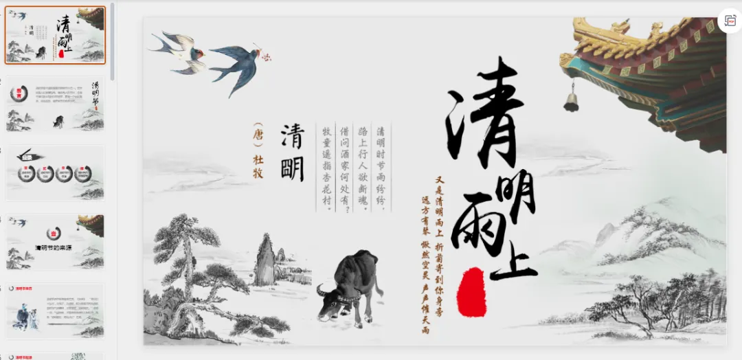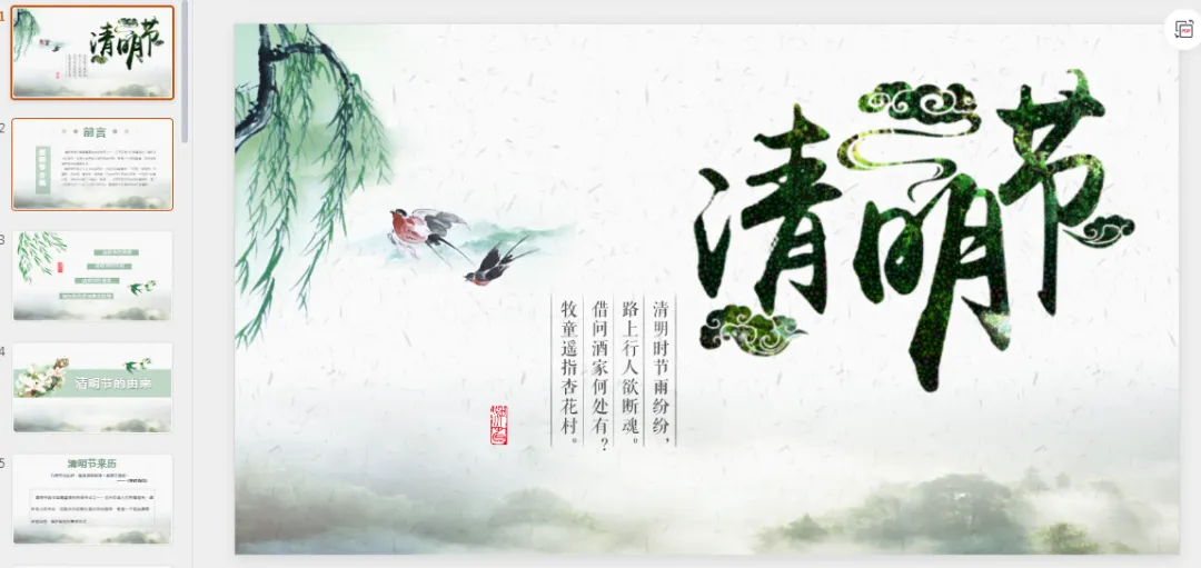 本文内容分享【清明节主题PPT模板】