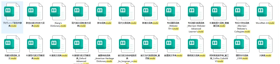 - 简明英汉词典(mobi),适配英语入门、日常简单查词;