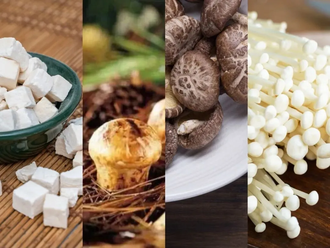 茯苓、鸡腿蘑、木耳、猴头菇等食用菌富含真菌多糖等活性营养五脏,有助于调节血糖[1]