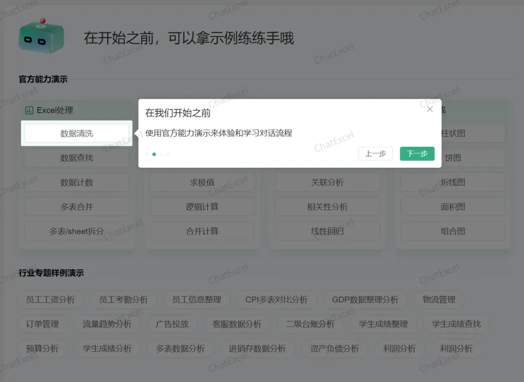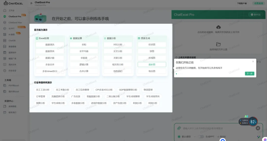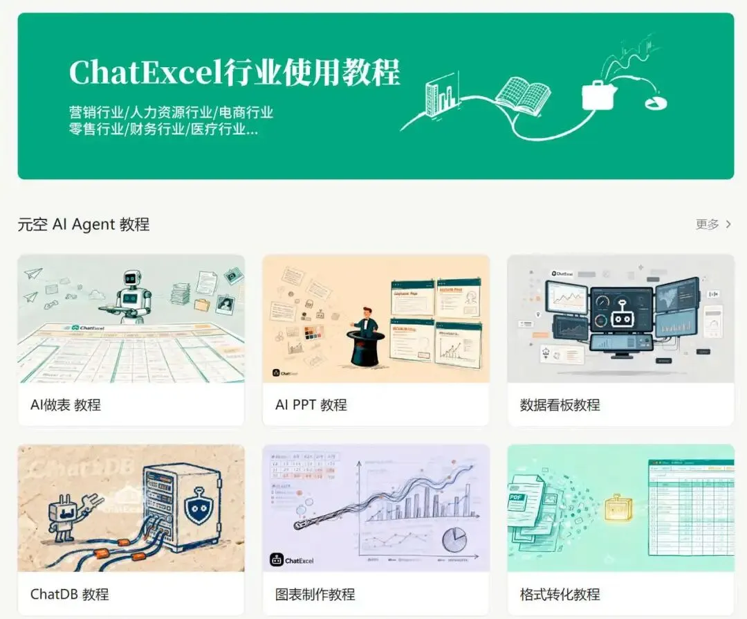 ChatExcel 已开放完整的官网教程与实操演示,从基础指令输入到复杂多表分析,都有 step-by-step 操作指南与案例模板。