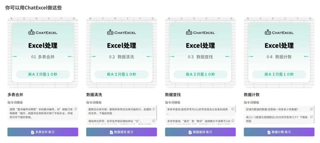 这些教程可以让你快速学会Chat Excel的不同功能,在面对不同的场景的数据处理之前,都可以先在官网上找到对应教程,帮助你在多种场景下更快更完善地处理好自己的工作。