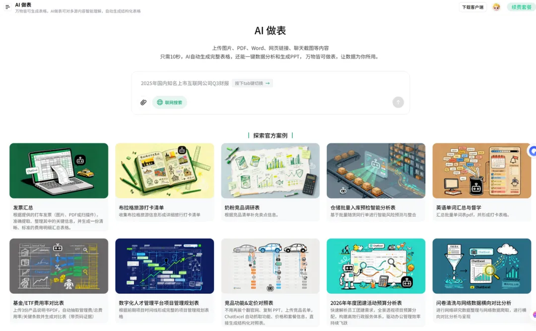 本文(上篇)将聚焦全链路 Excel 智能数据处理、AI 做表两大表格处理板块,详细拆解 ChatExcel 在表格创建、数据整合、清洗、检索、统计等基础环节的实操体验,同时结合办公生态视角,深度解读这款生态赋能下的 AI 数据办公工具标杆。