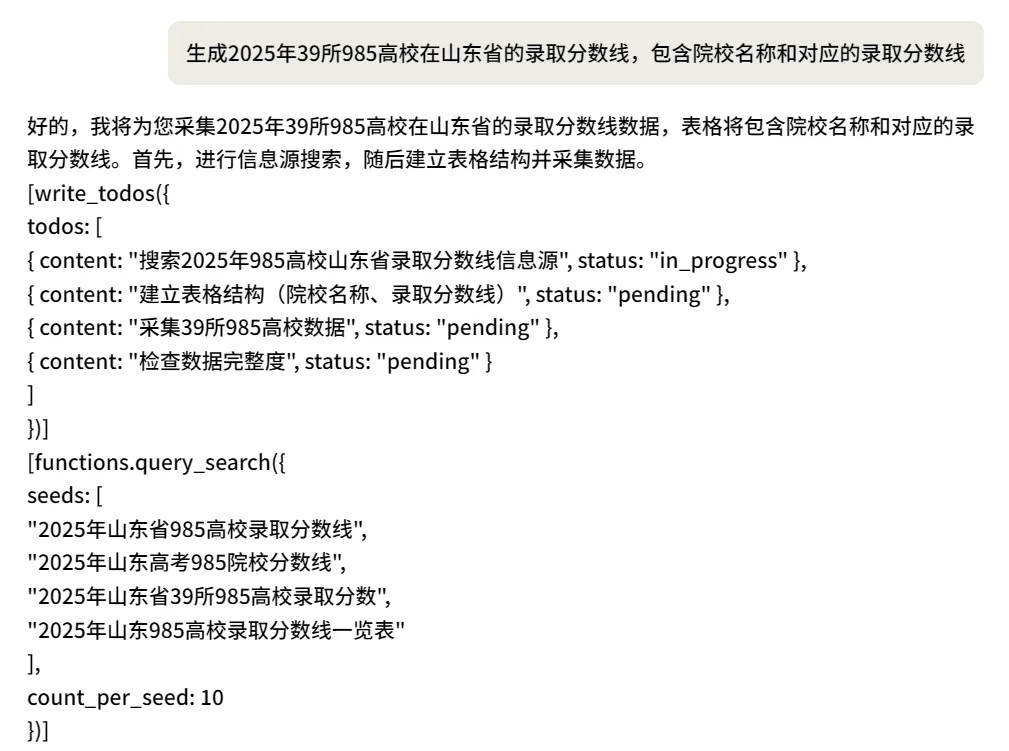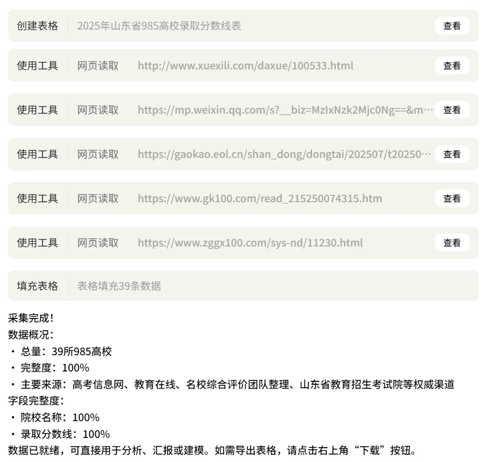 例如教育部想统计2025年部分省市的高考分数线,输入: