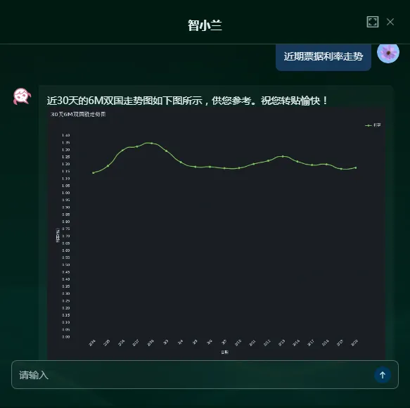为满足用户对票据市场动态及数据信息的需求,「智小兰」可快速提取票据市场数据,支持查询票据承兑发生额、票据利率走势等信息,并同步提供简洁的市场分析,帮助用户快速掌握市场动态,降低时间成本。