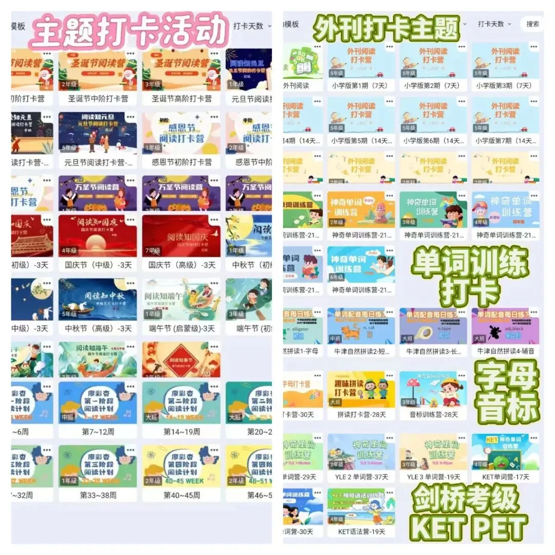 1、资源上,原版内容与同步教材双线并行,搭配百万题库、各类绘本、专项AI智习内容,客户想要的资源应有尽有,再也不用全网搜罗、费心整理;配套阅读打卡内容拿来即用,新手老师也能快速上手。