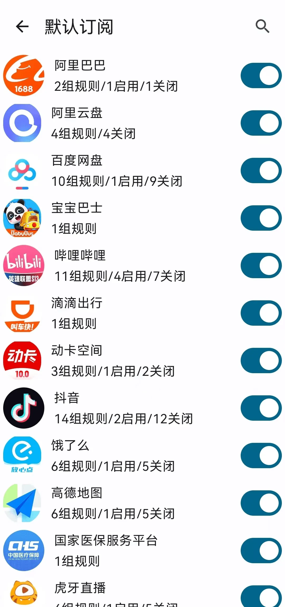 默认订阅规则(覆盖大部分App) -