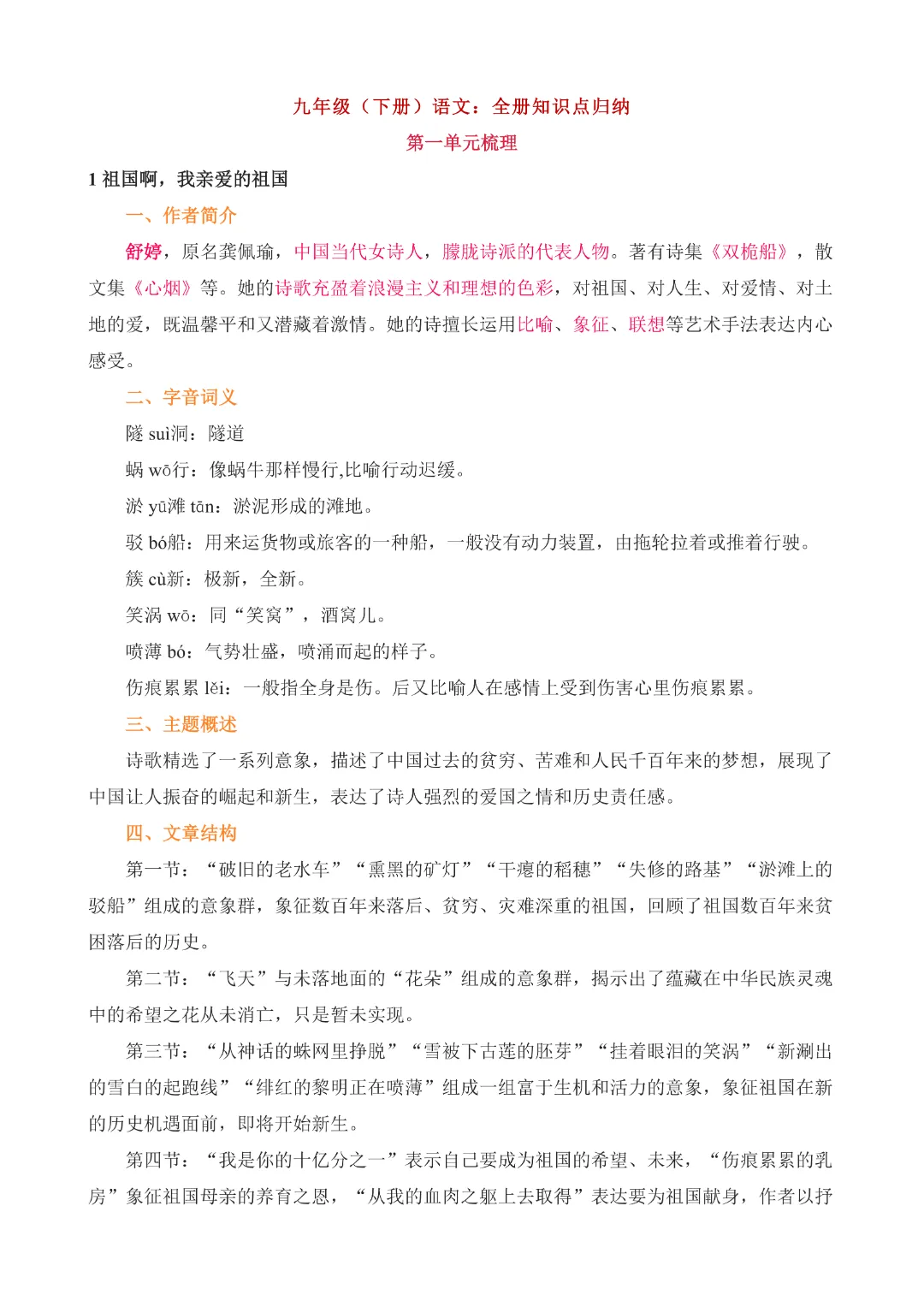 26新《统编版》九年级(下)语文【全册重要知识点归纳汇总】共103页 完整可打印