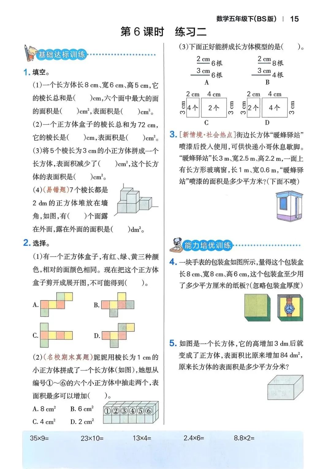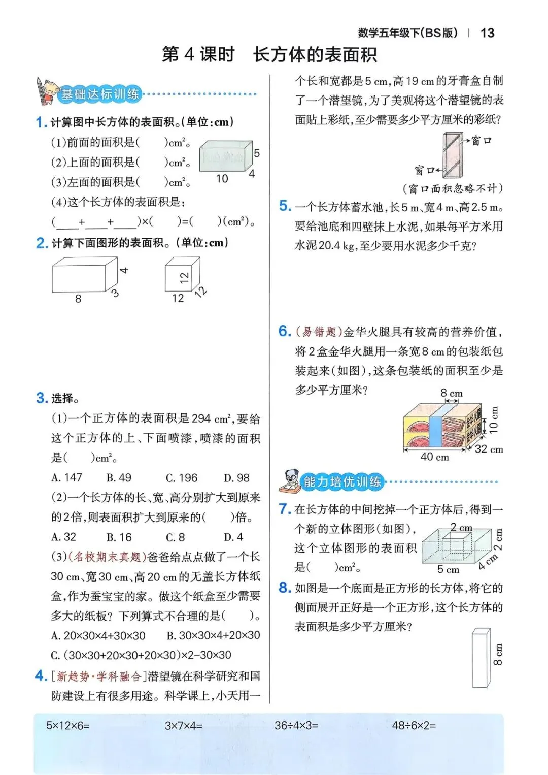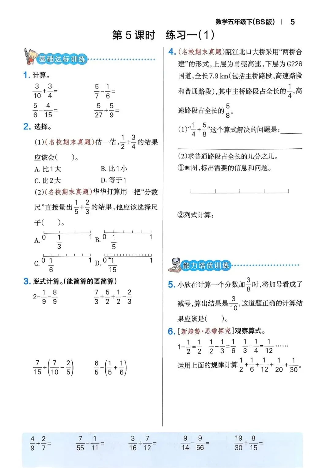 🌸2026年春五年级下册数学北师版《一课一练》同步练习含答案,完整电子版可打印。