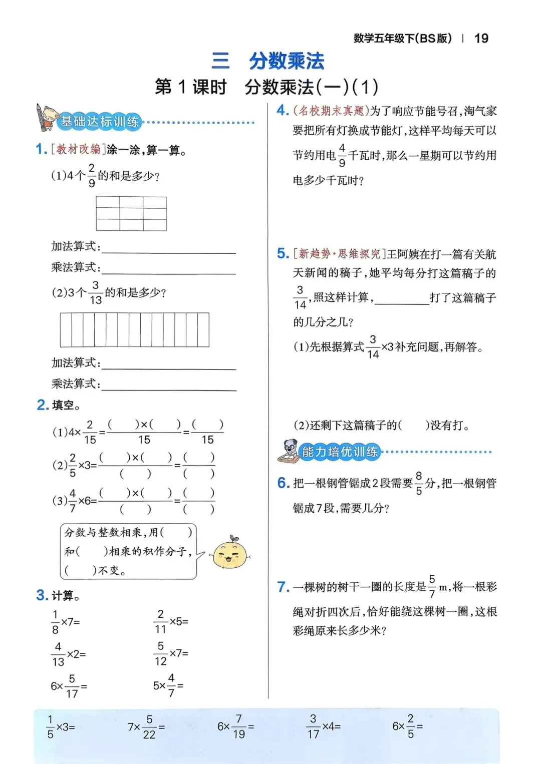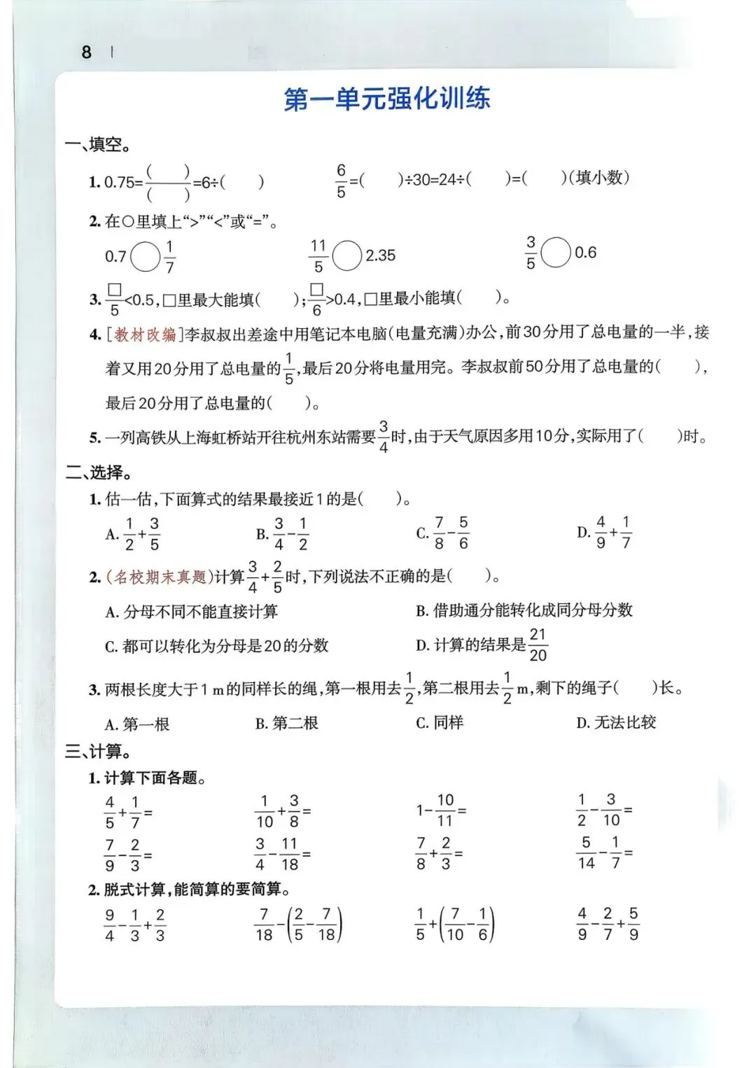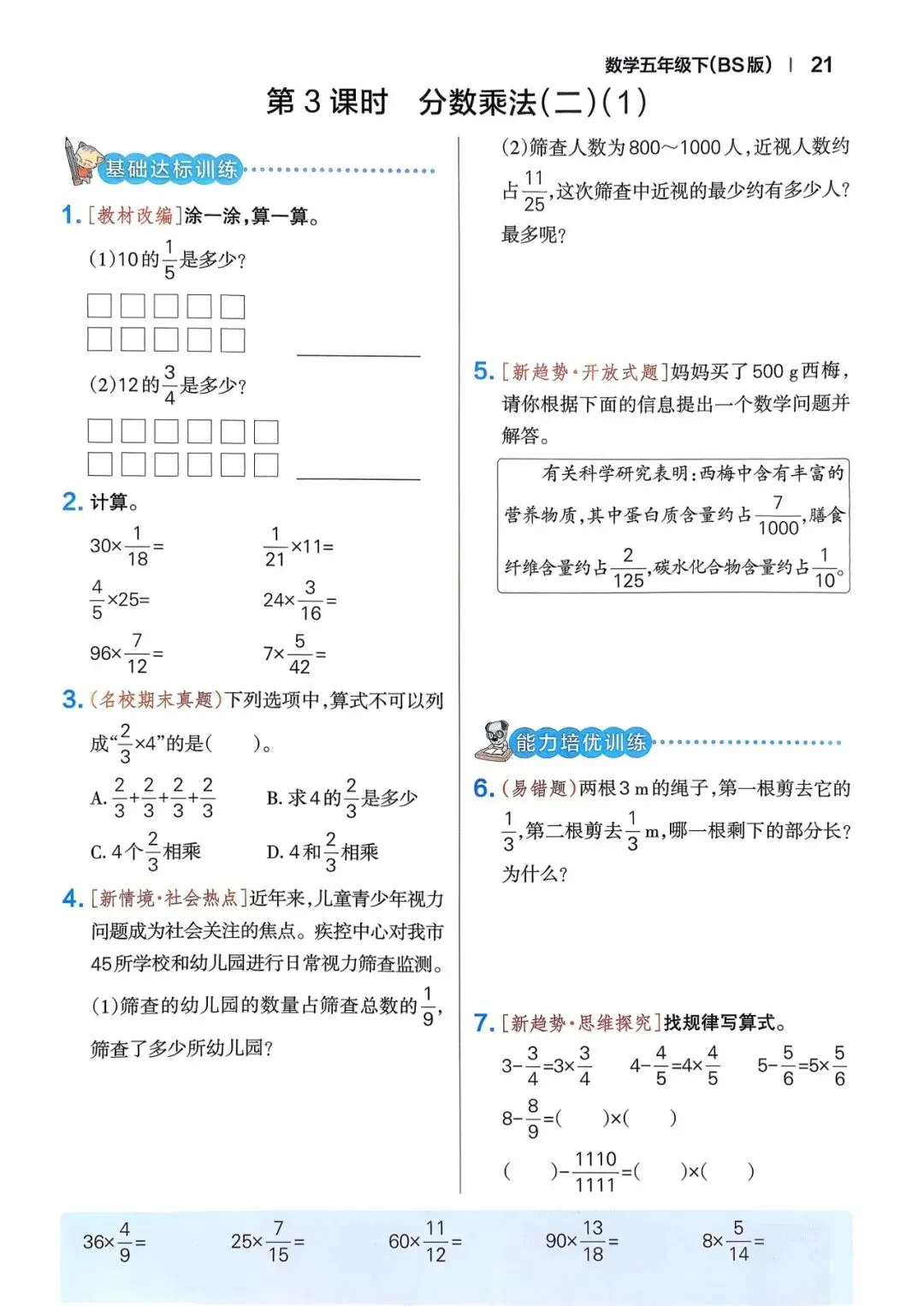 🌸2026年春五年级下册数学北师版《一课一练》同步练习含答案,完整电子版可打印。