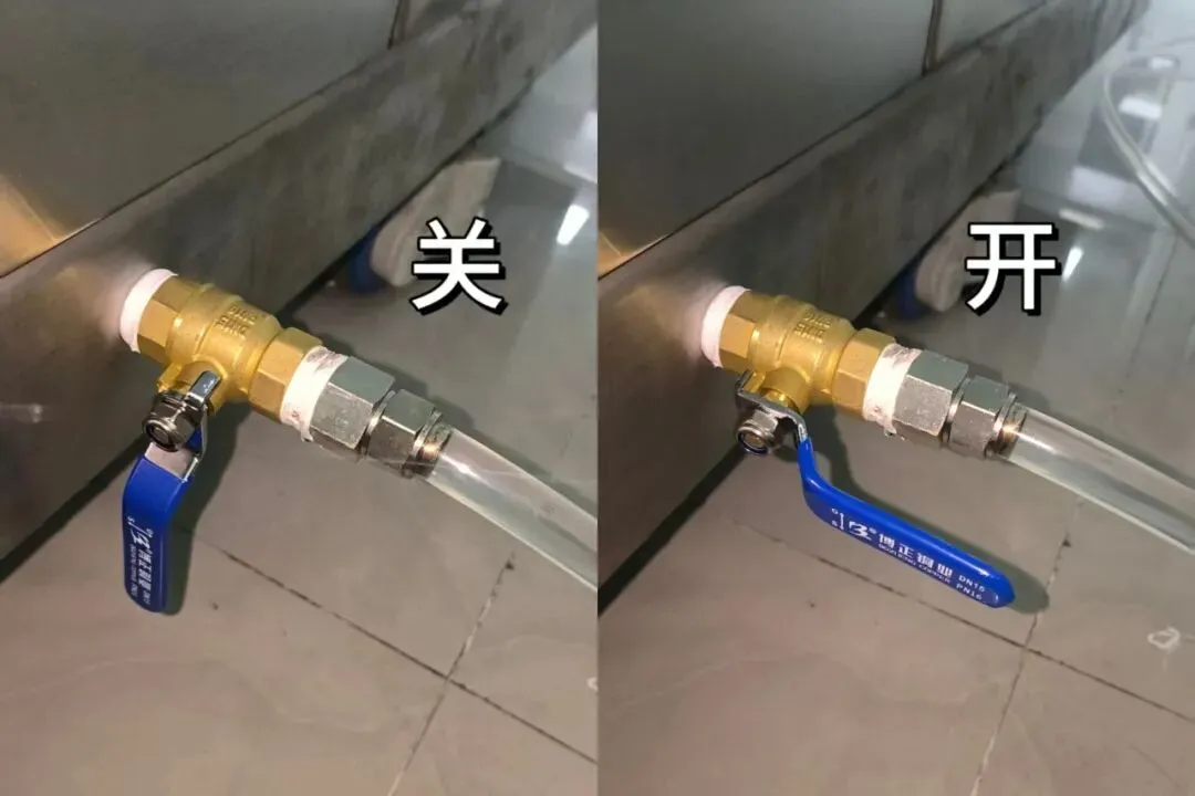 1.为方便设备操作,HPP超高压处理设备后方进水管处加装开关球阀。设备总供水阀门位置,除原设在软糖设备后方的进水口外,新增设于设备后方此处。