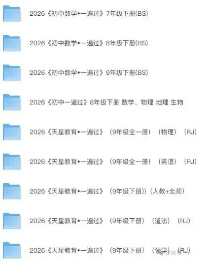 2026春下册《一遍过》电子版语文数学英语物理历史化学生物地理道法可下载打印(含北师大版数学)