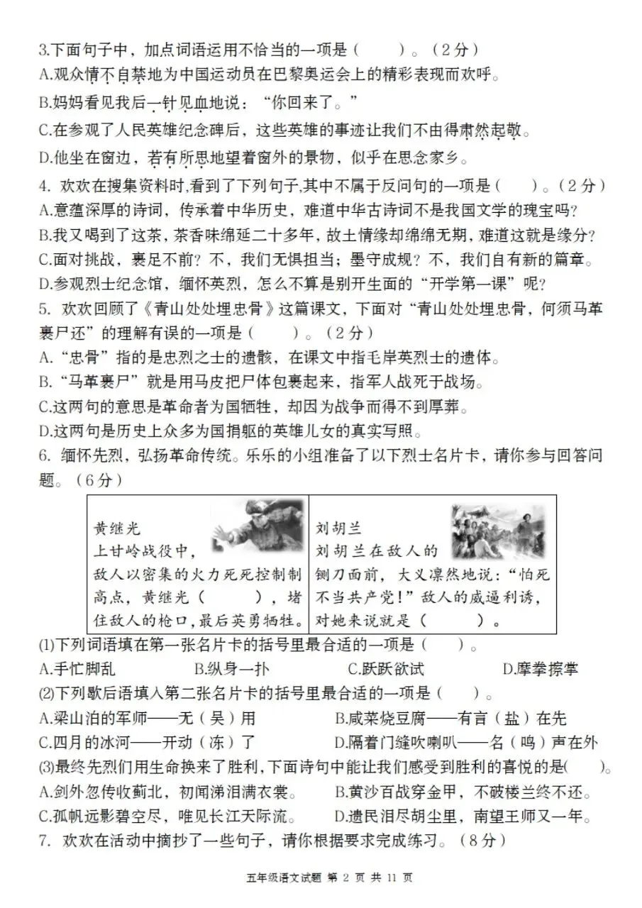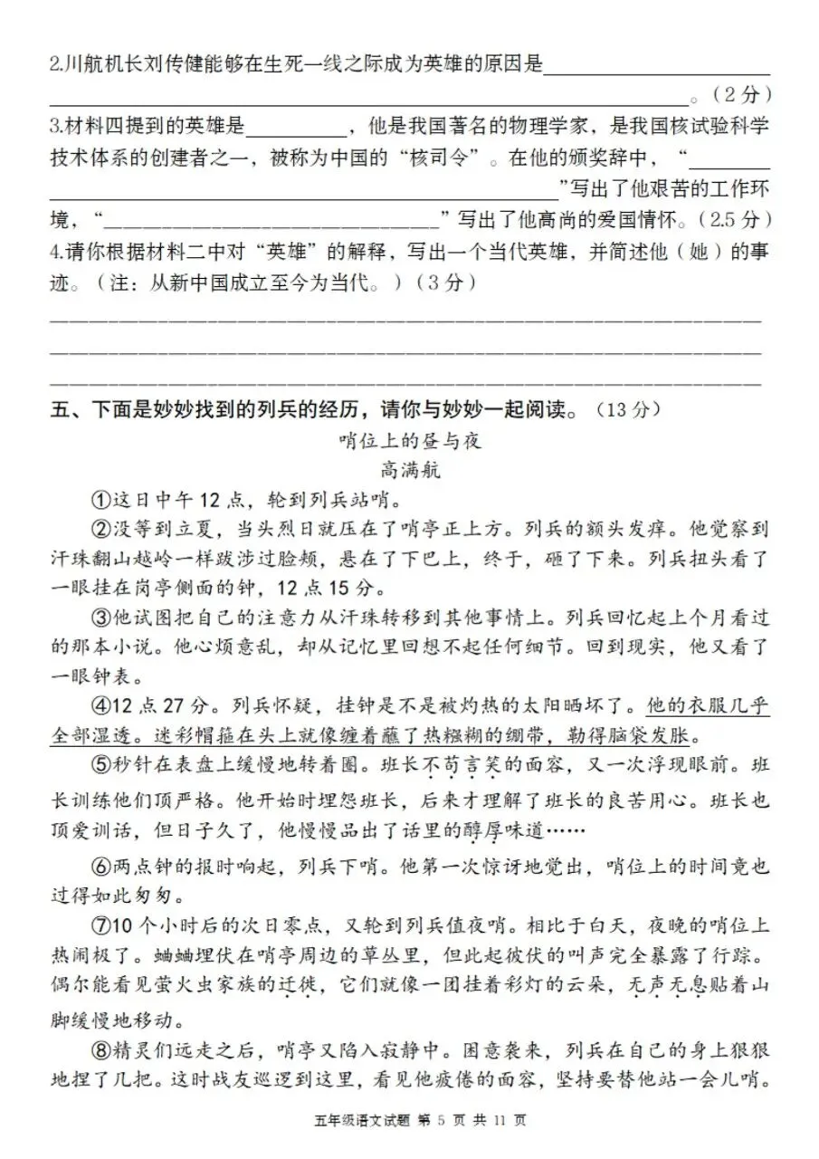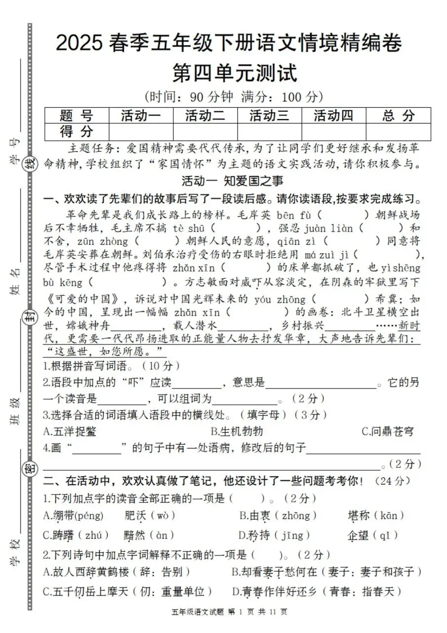 五年级下册语文情境精编卷第四单元测试电子版免费领取