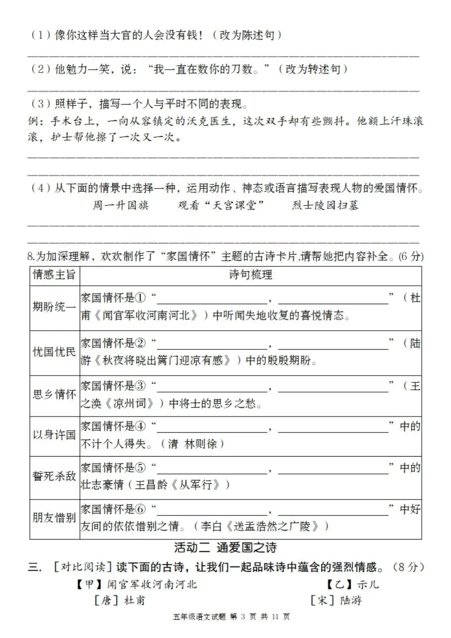 三、古诗三首(默写+理解+情感,100%考)