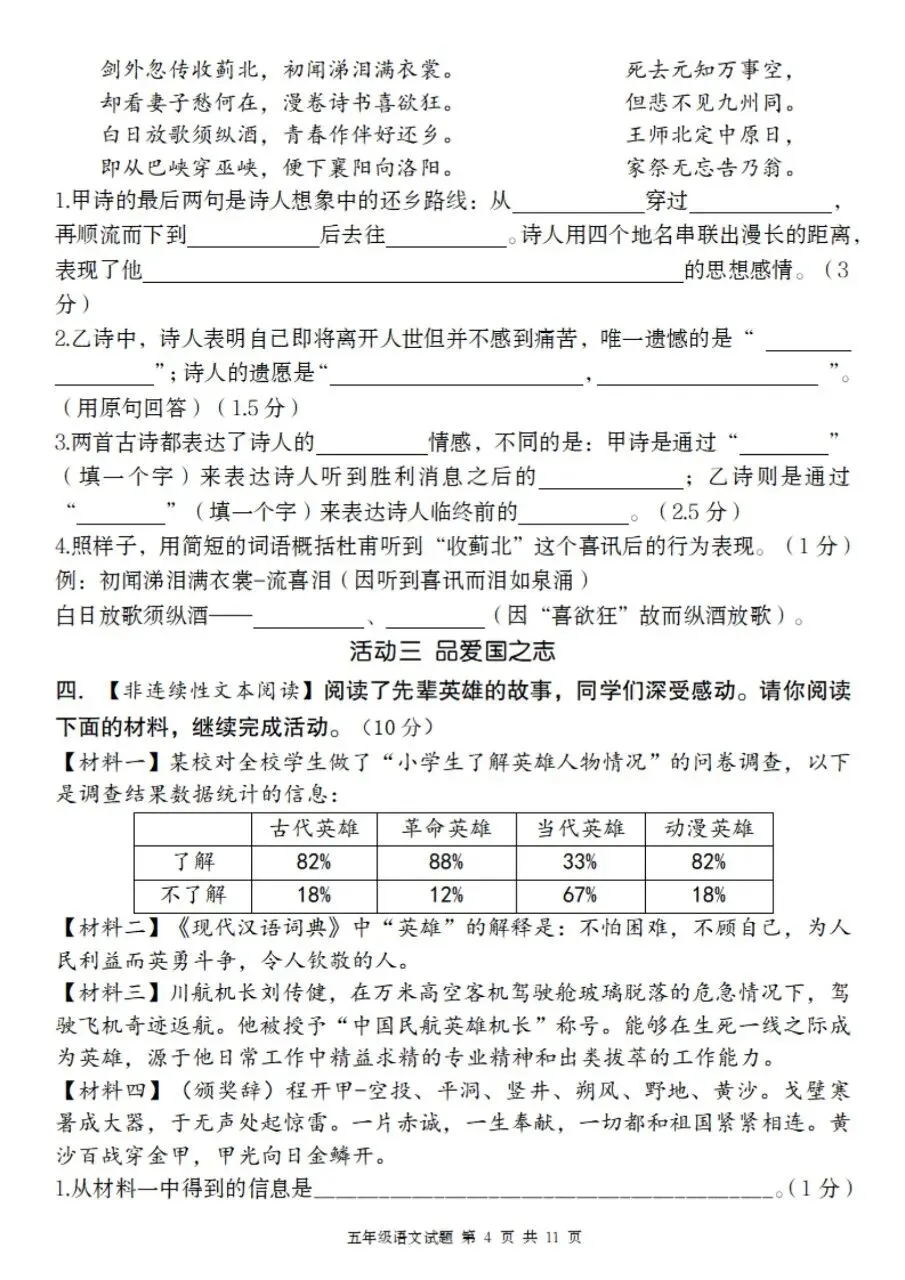 五年级下册语文情境精编卷第四单元测试电子版免费下载!