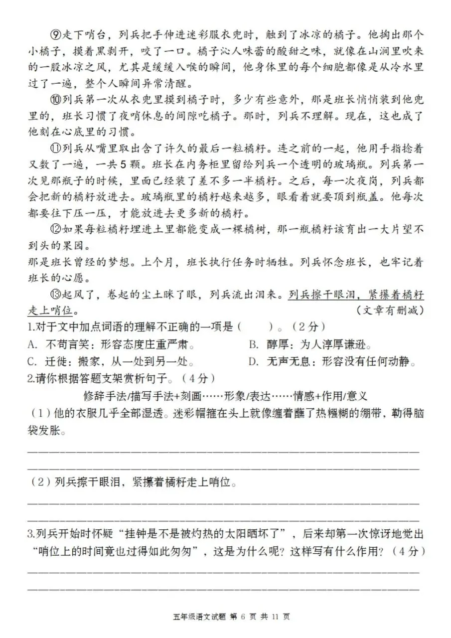 – 考点:内心变化、神态/动作描写、句子含义
