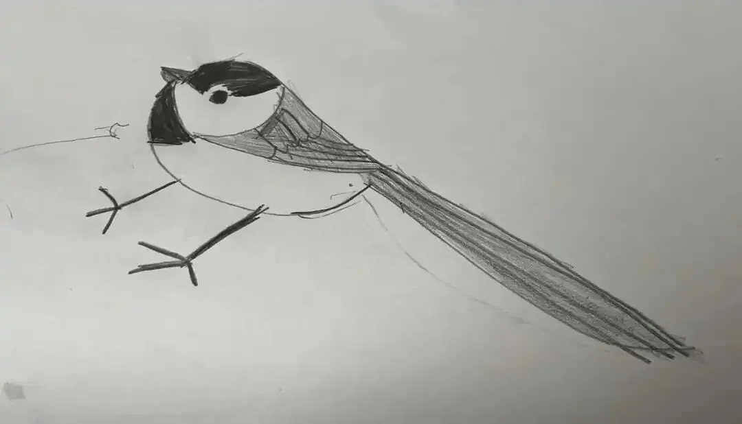 他画一只鸟的时候,花了很长时间调整脚的位置。配音老师继续鼓励:“Take your time and slow, there is no need to rush”(慢慢来,不用着急)。