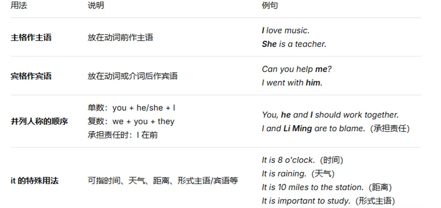 这里需要注意主格和宾格之间的变化,分析人称代词再句子中做什么成分。其次,当人称并列时,除承担责任以外,I都要放在最后面。