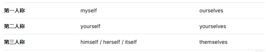 反身代词指代表示“某人自己”,也就是汉语中常说的“我自己,你自己,他们自己”等这些常用的词语。
