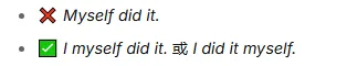 但与汉语用法不同,汉语中我自己可以独立做主语,比如“我自己把衣服洗了。”但英语中,反身代词不能独立做主语。